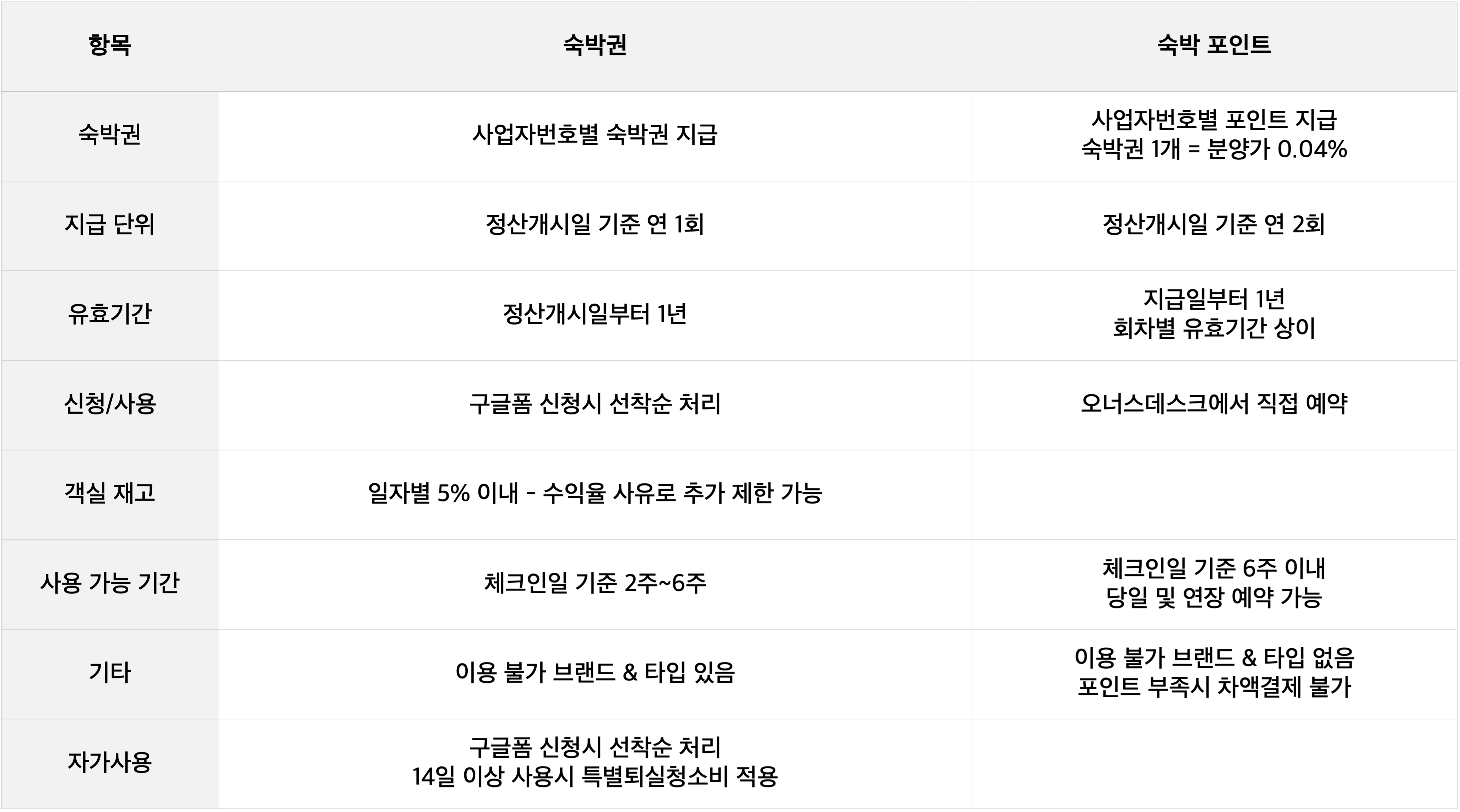 위탁계약상 지급하는 숙박권 숫자만큼 곱한 포인트를 연 2회 나눠서 지급. 위탁계약 상 10박을 지급하는 경우 분양가의 0.2%에 해당하는 포인트를 2번에 나눠서 지급
